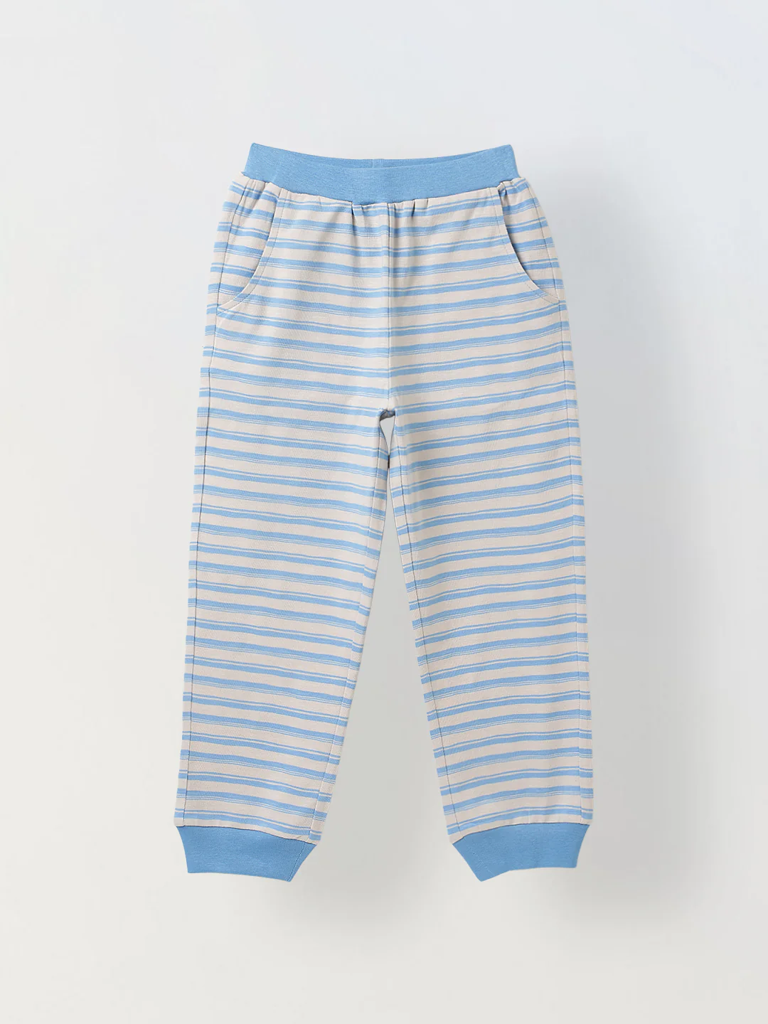Beige & Blue Striped T-shirt with Pyjamas Set