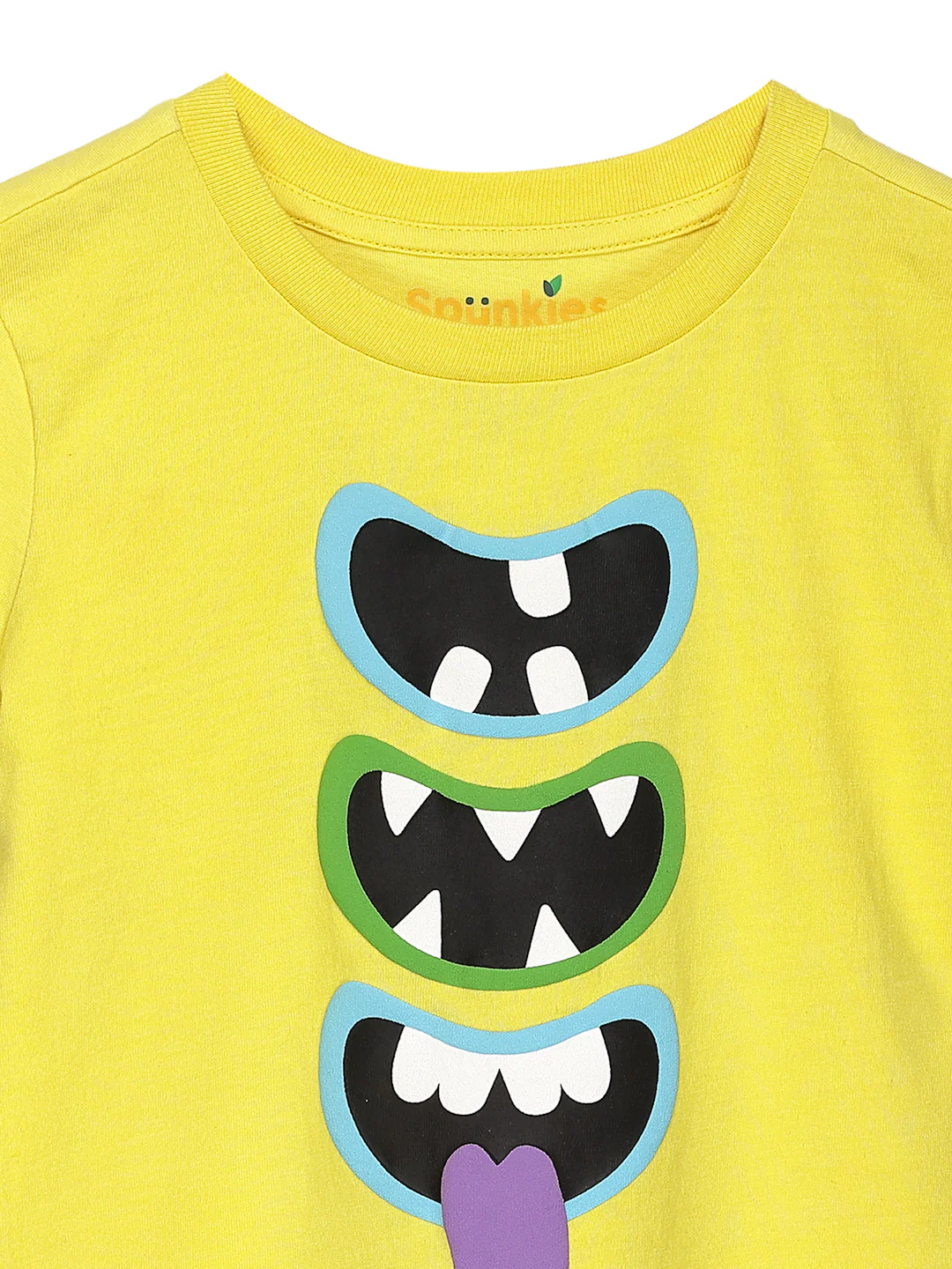 Elevate your youngest adventurers wardrobe with the Boys Cute Stylish Playful Yellow Set from Spunkies. This vibrant and cosy cotton sets will inspire the imagination of your budding fashion icon. Its premium fabric meets comfort and a round neck gives a snug fit with snugfit pants. The striking front print injects personality. Let them enjoy this jazzy and energetic addition to their collection.