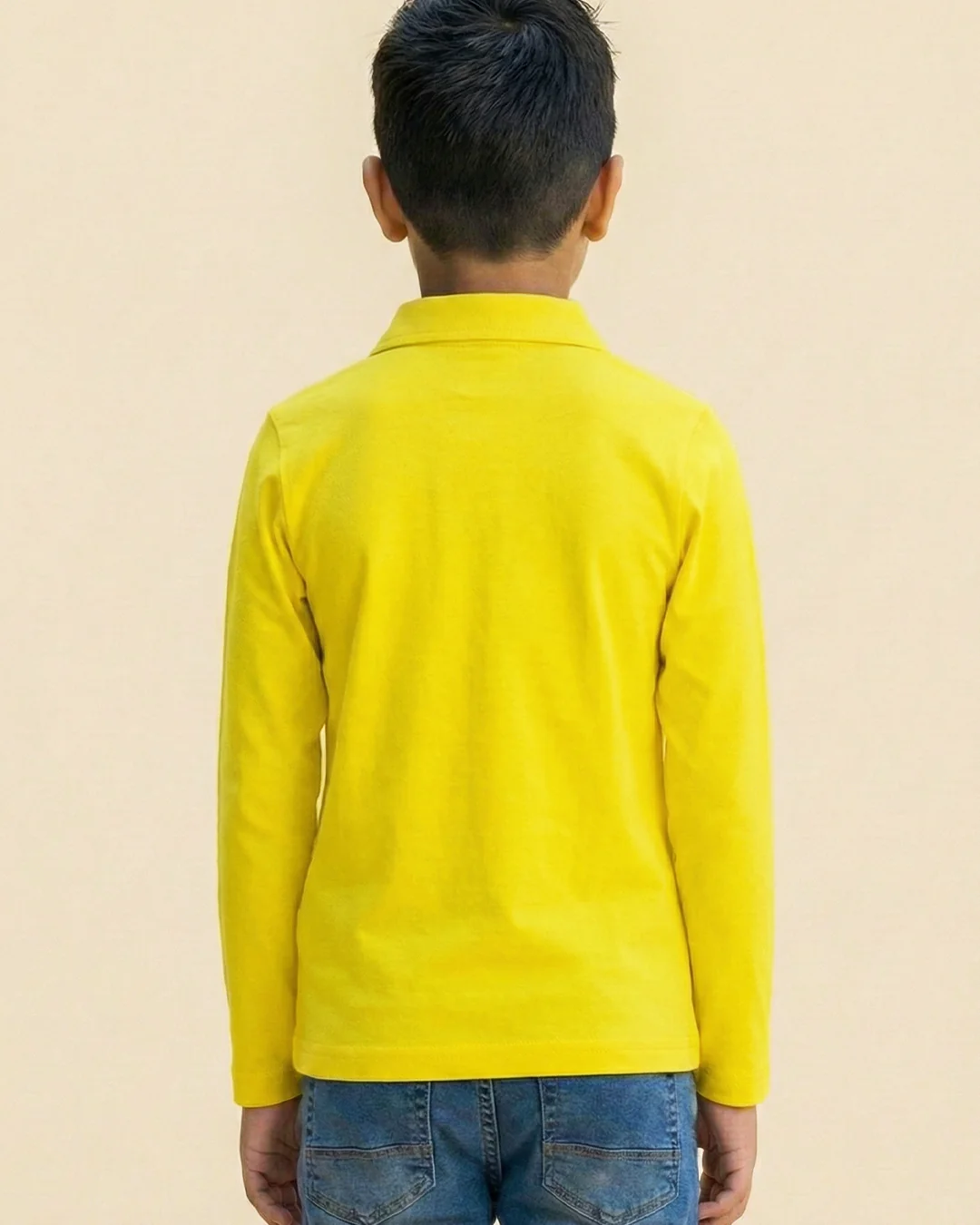 Boys Yellow Collar Neck Polo T-Shirt with Patch