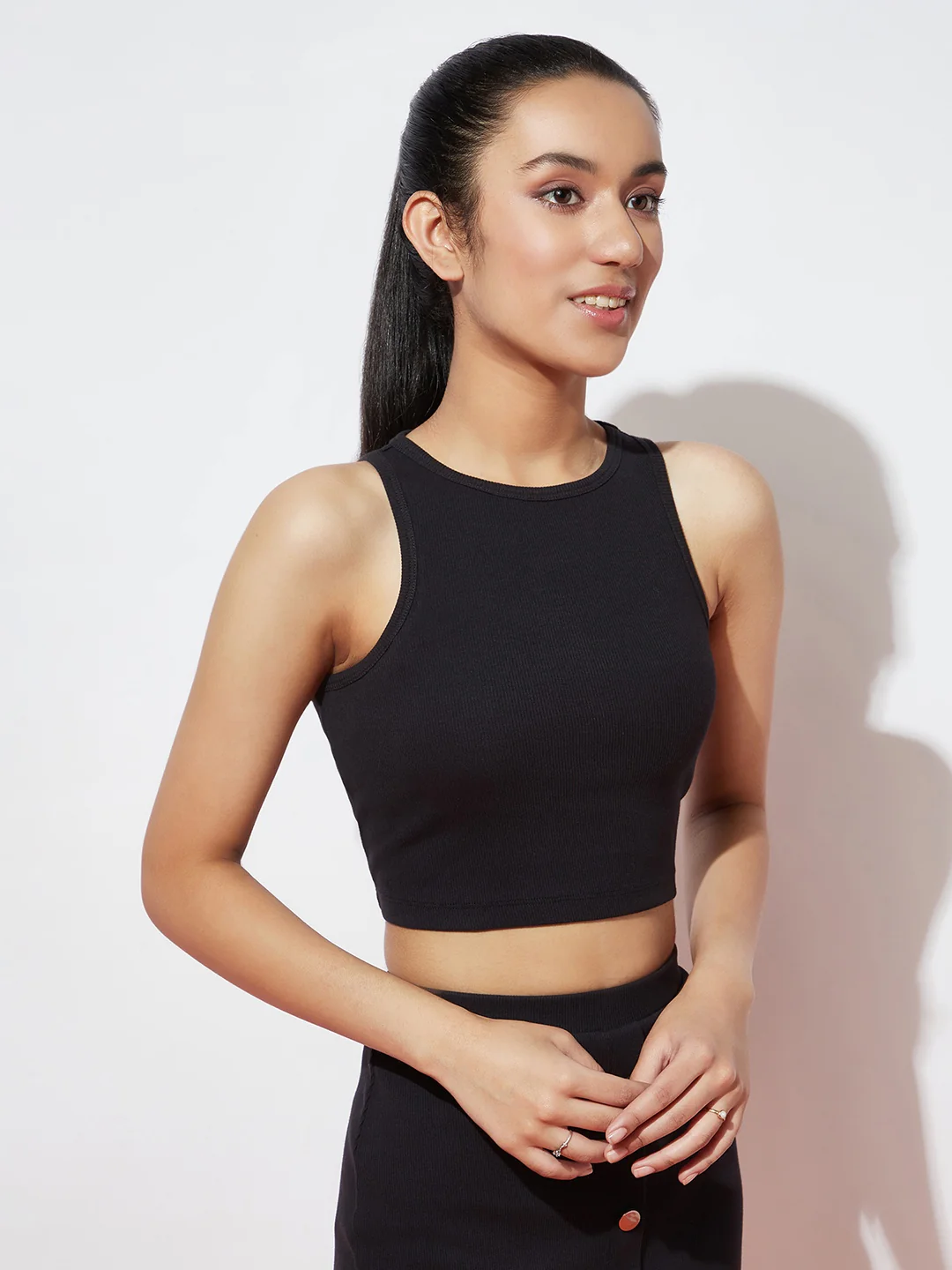 Black Stretch Ribbed Top