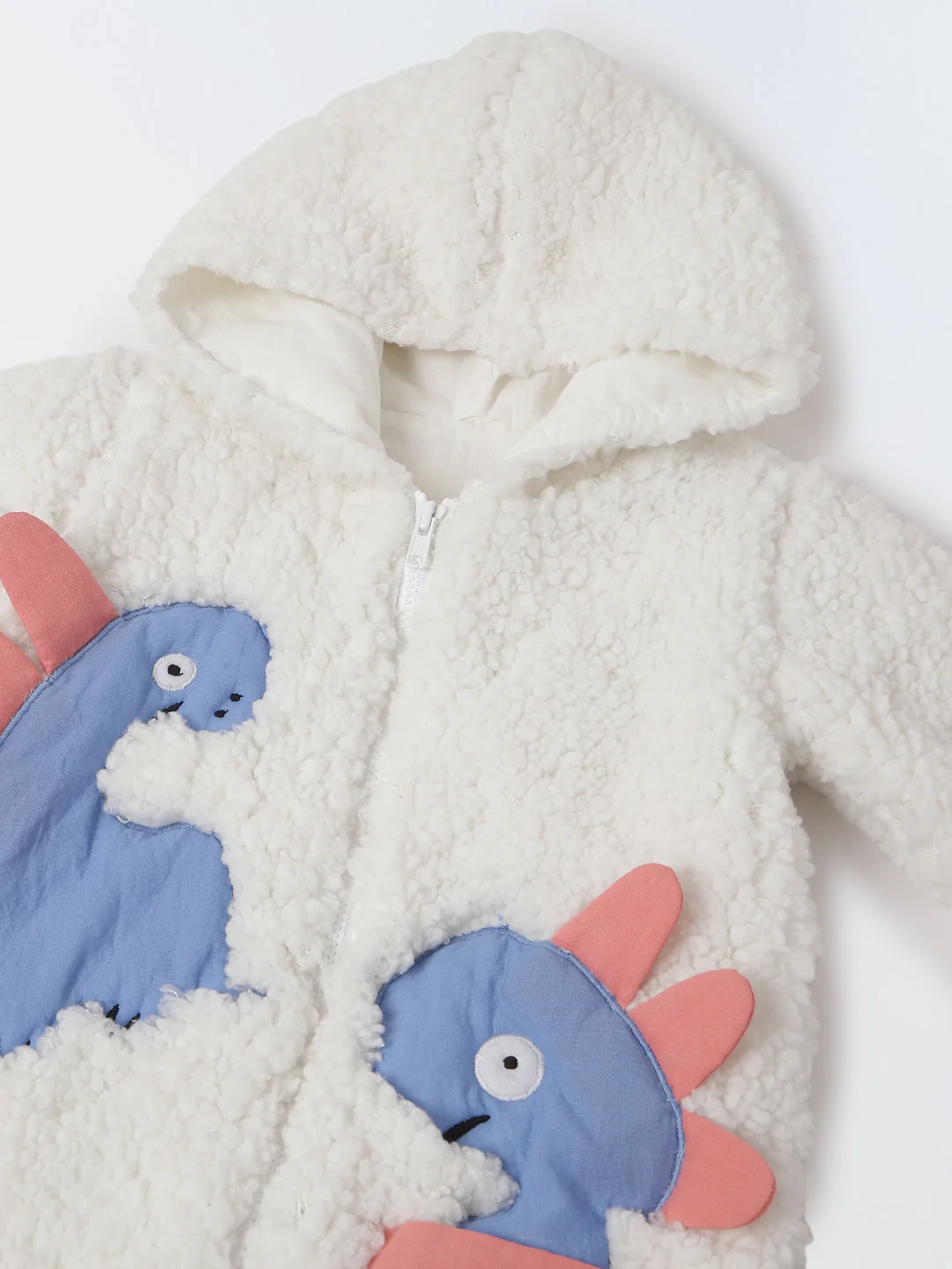 Infant Fuzzy Dinosaur Hooded Romper - Cozy & Adorable Winter Outfit