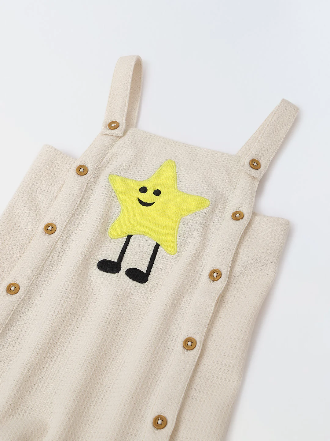 Spunkies Cotton Structure Jersey Knit Embroidered Patch Regular Casual Wear Romper Infant Sleeveless Off White Soft Fabric