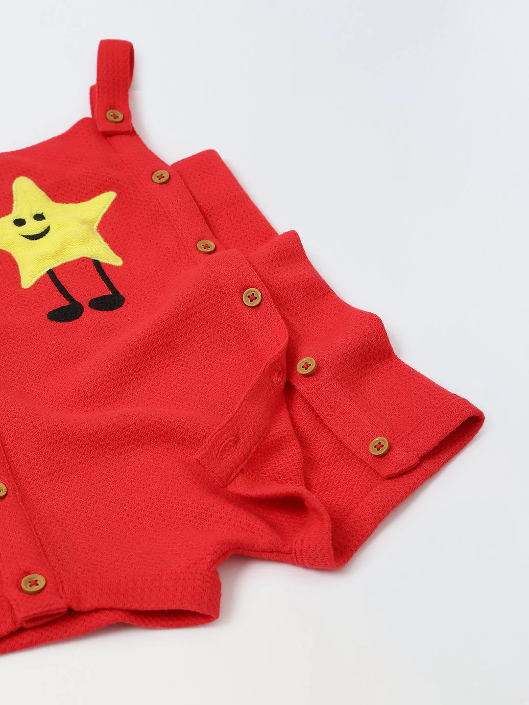 Spunkies Cotton Structure Jersey Knit Embroidered Patch Regular Casual Wear Romper Infant Sleeveless Red Soft Fabric