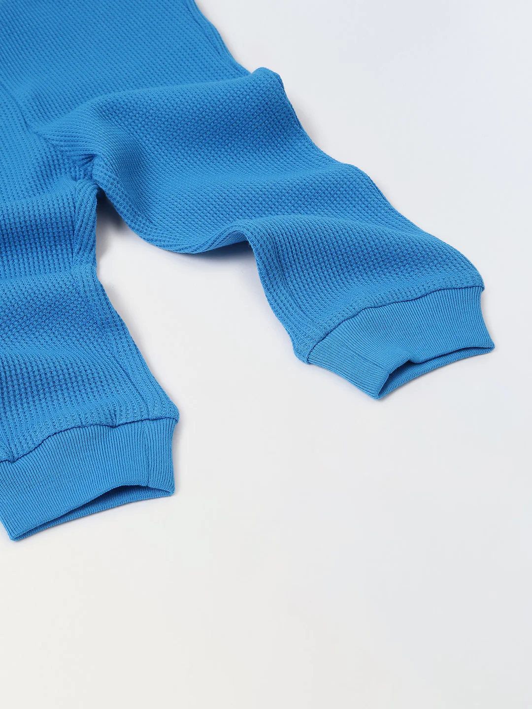 Spunkies Cotton Waffle Knit Solid Regular Casual Wear Set Infant Full Sleeve Blue Soft Fabric