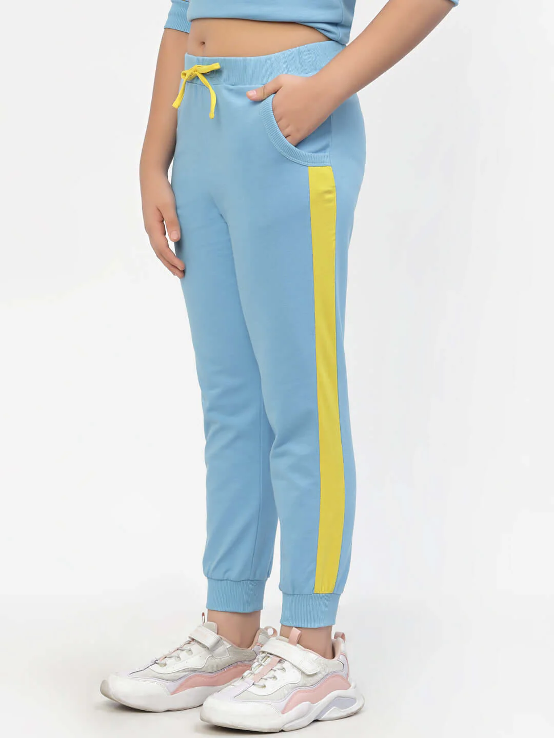 Spunkies Organic Cotton Side Stripe Girls Joggers Blue—