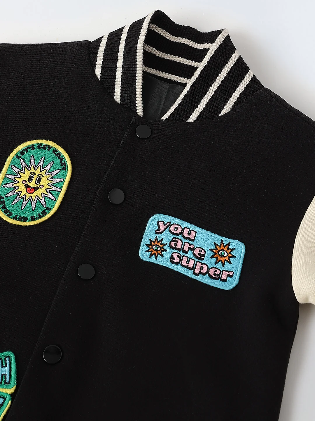 -70%Black Varsity Patch Jacket—