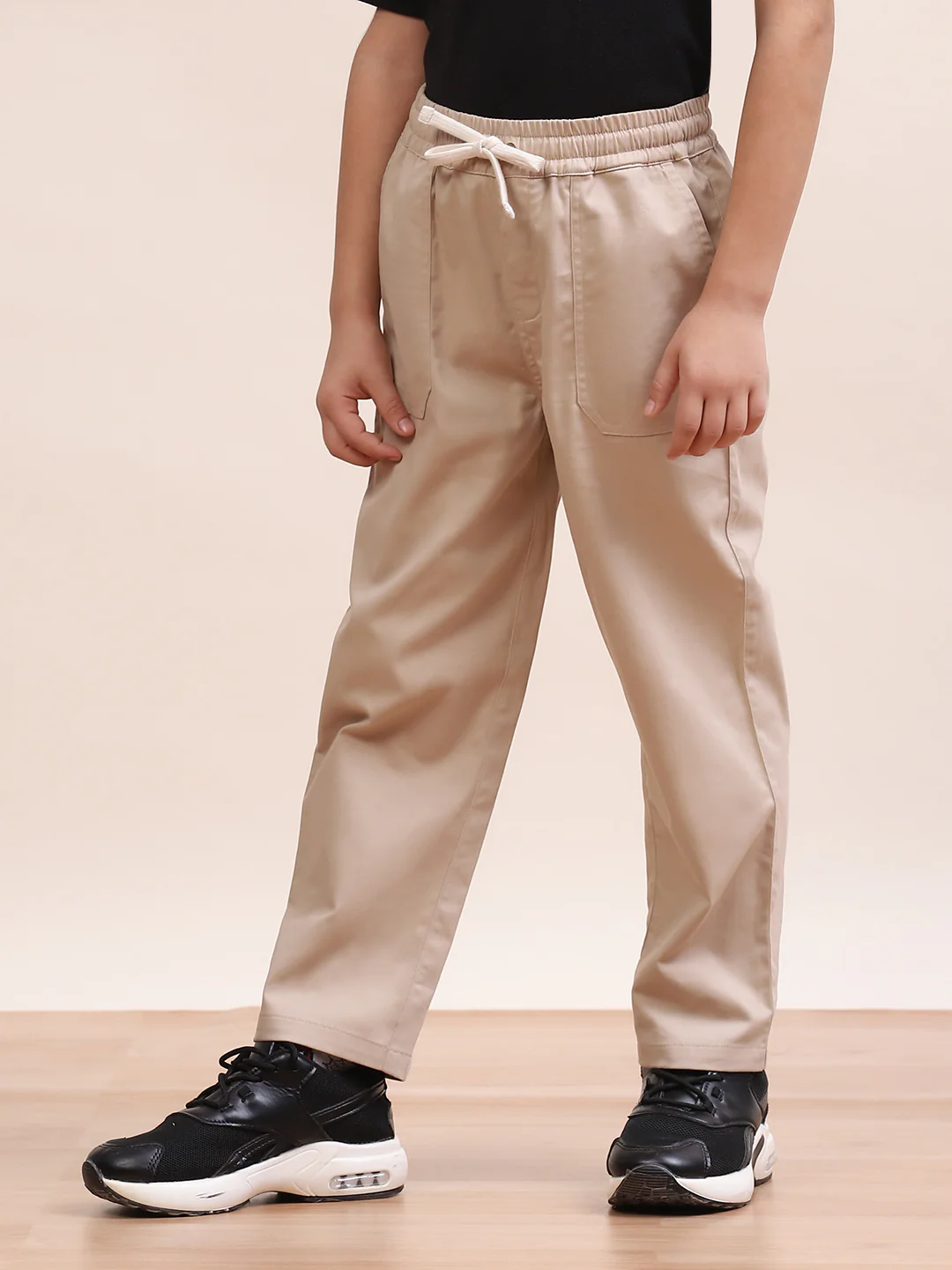 Spunkies Twill Cotton Woven Solid Regular Casual Wear Pant Boys Beige Soft Fabric