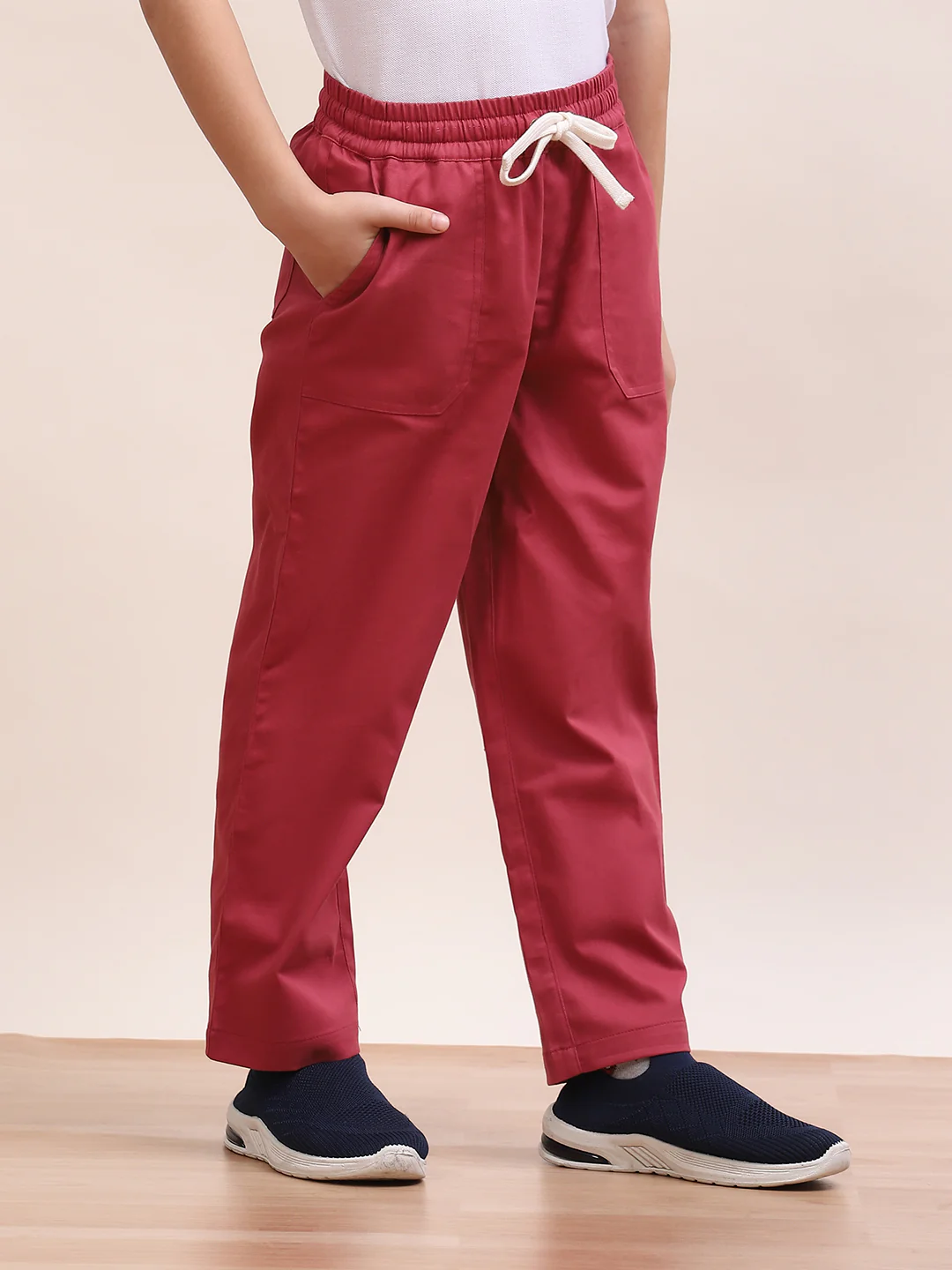 Spunkies Twill Cotton Woven Solid Regular Casual Wear Pant Boys Wine Soft Fabric