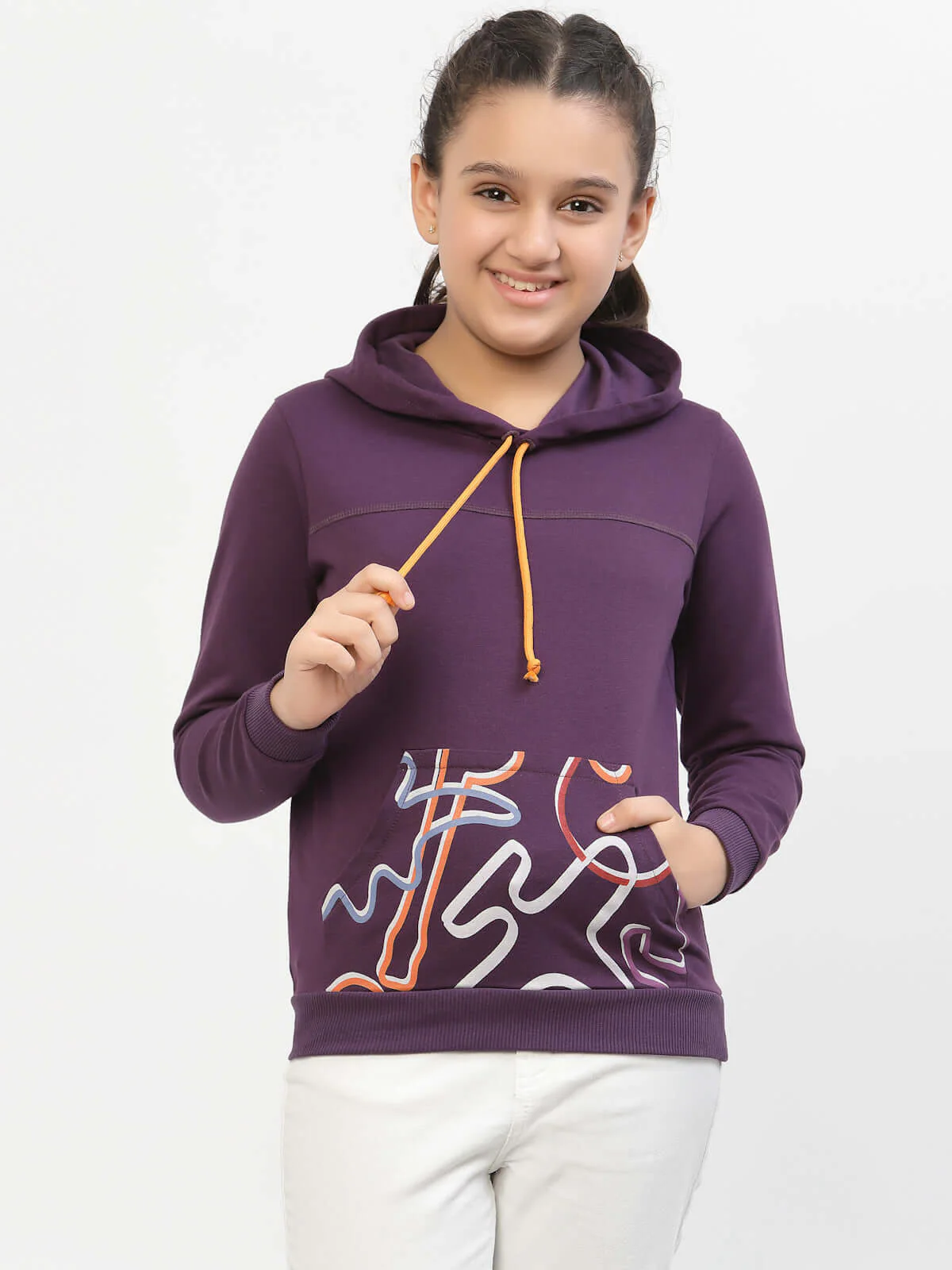 The Spunkies Zig-Zag Printed Organic Cotton Hoodie in Violet is a trendy and eco-friendly choice for young girls. The hoodie features a stylish zig-zag print in violet, adding a playful and eye-catching element to the design. The vibrant color and pattern make it a standout piece in any girl's wardrobe